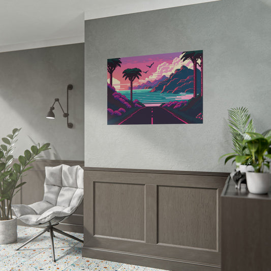 Vaporwave Road To Paradise Pixel Poster Art Print | Aesthetic Synthwave Gamer Wall Decor | 3 Paper Options