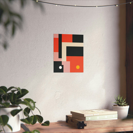 Duo Moon Abstract Poster Art Print | Geometric Minimal Fine Art Decor | Bauhaus Mondrian Style