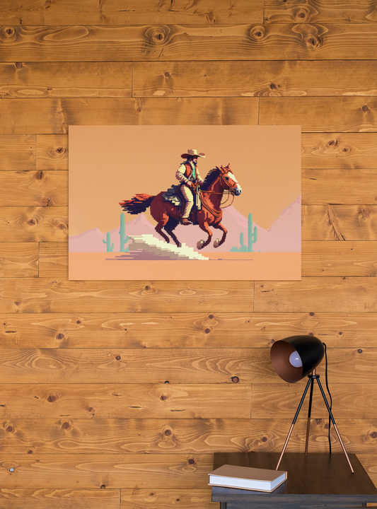 Pixel Cowboy Horse Poster Matte Art Print | Aesthetic Texas Western Gamer Decor