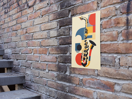 Abstract Saxophone Poster Art Print | Bauhaus Geometric Minimal Jazz Music Decor
