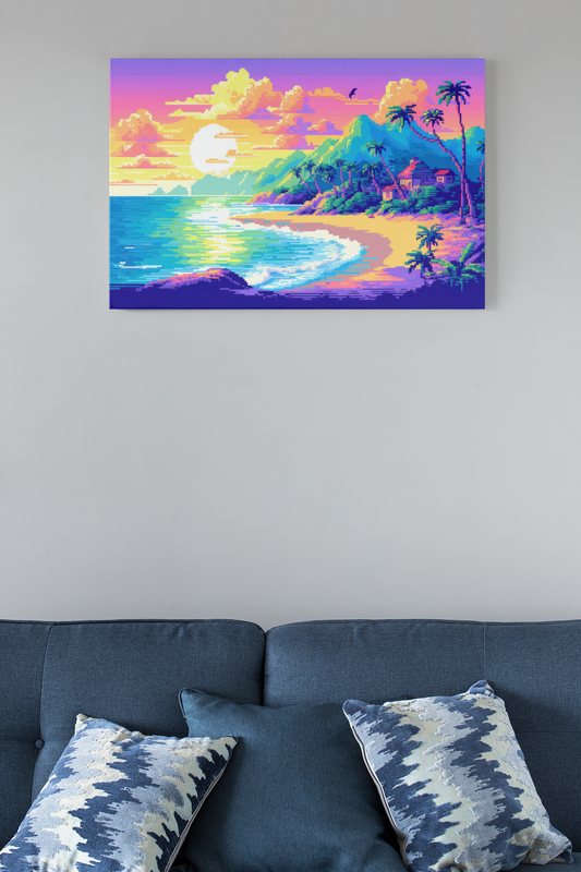 Vaporwave Beach Pixel Poster Matte Art Print | Aesthetic New Zealand Gamer Wall Decor