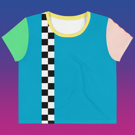 Color Block Pastel Crop Top Tee | Asymmetric Rainbow Checker Skater Apparel