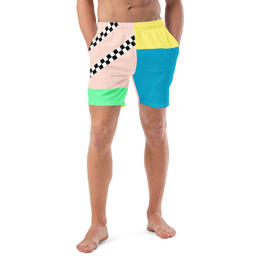 Color Block Checkerboard Swim Trunks Asymmetric | Aesthetic Skater Summer Shorts 2XS-6XL