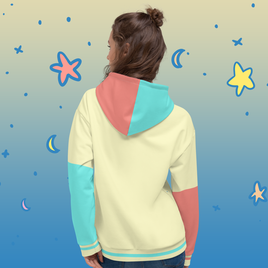 Cute Moon & Stars Color Block Hoodie | Cute Pastel Aesthetic Kidcore Unisex Sweatshirt