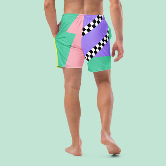 Color Block Pastel Swim Trunks Asymmetric Rainbow | Aesthetic Kawaii Skater Summer Apparel 2XS-6XL
