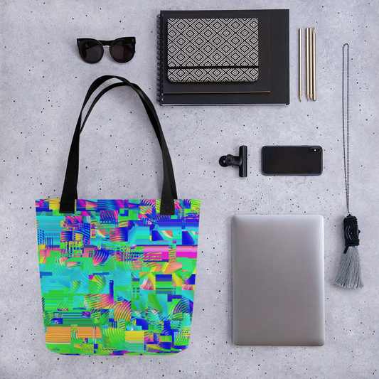 Colorful Rainbow Glitch Tote Bag Purse 15" x 15" | 80s 90s Skating Rink Aesthetic
