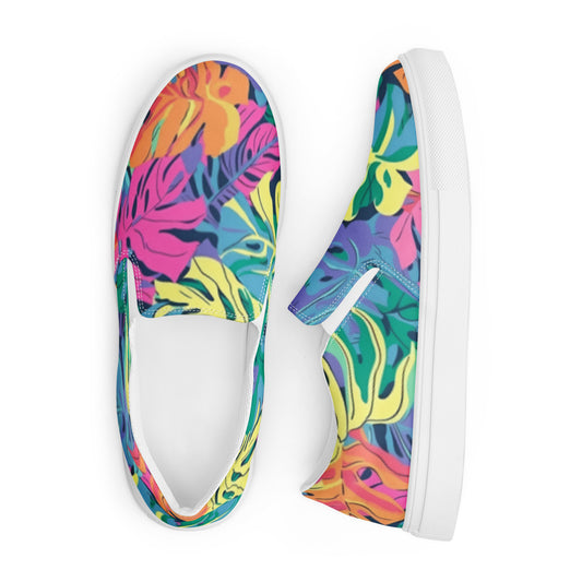 Colorful Monstera Women’s Shoes | Aesthetic Slip On Canvas Footwear