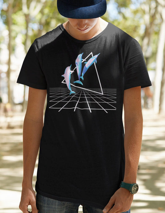 Vaporwave Aesthetic Dolphin Grid Shirt | 80s 90s Kawaii Unisex Cute Tee